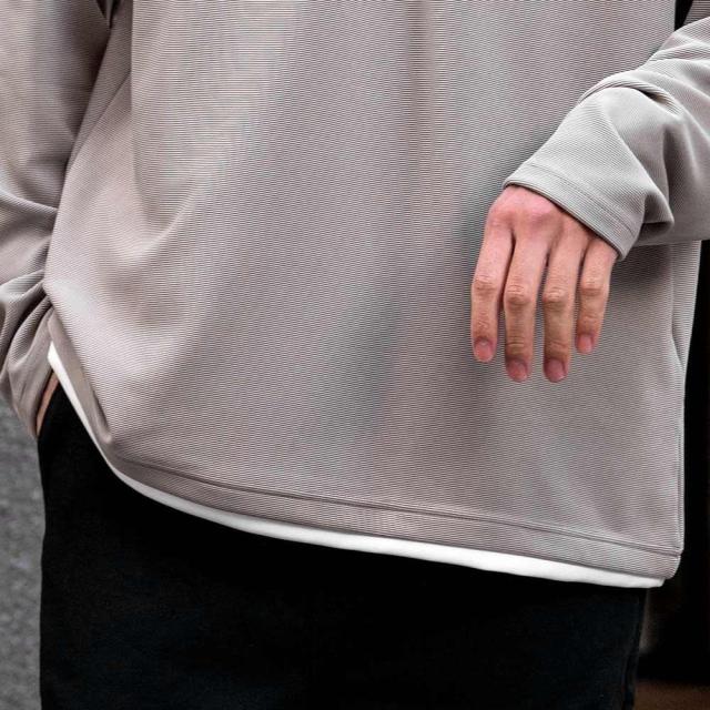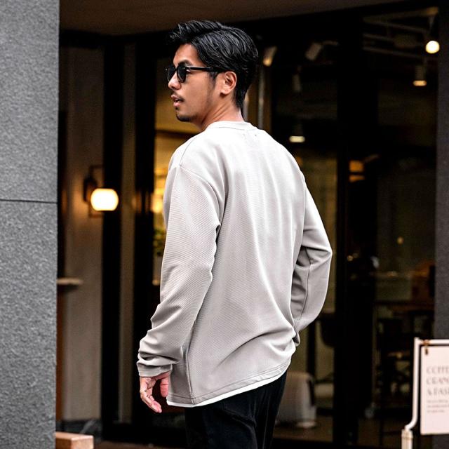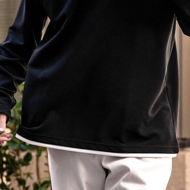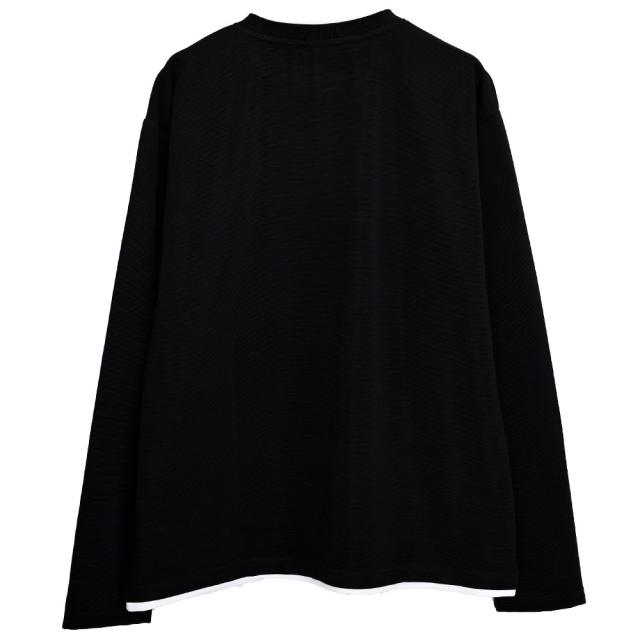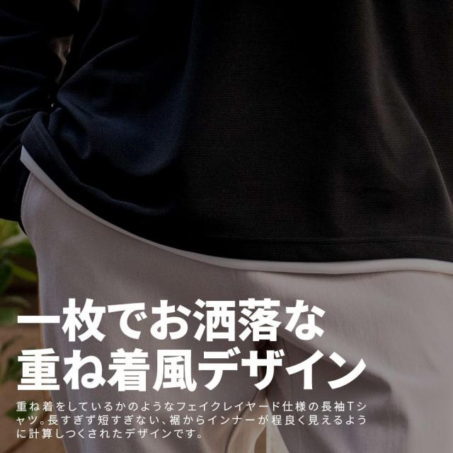 まるで重ね着をしているかのようなフェイクレイヤード仕様の長袖Tシャツ。