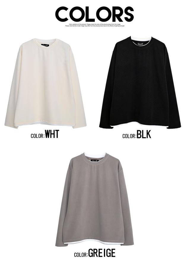 ロンT メンズ 長袖 Tシャツ ブランド おしゃれ 長袖Tシャツ カットソー フェイクレイヤード 重ね着風 無地 クルーネック トップス ゆったり 大きいサイズ ホワイト ブラック 白 黒 CavariA 20代 30代 40代 ユニセックス 男性 男 服 春 春服 ファッション [CAHP25-01]