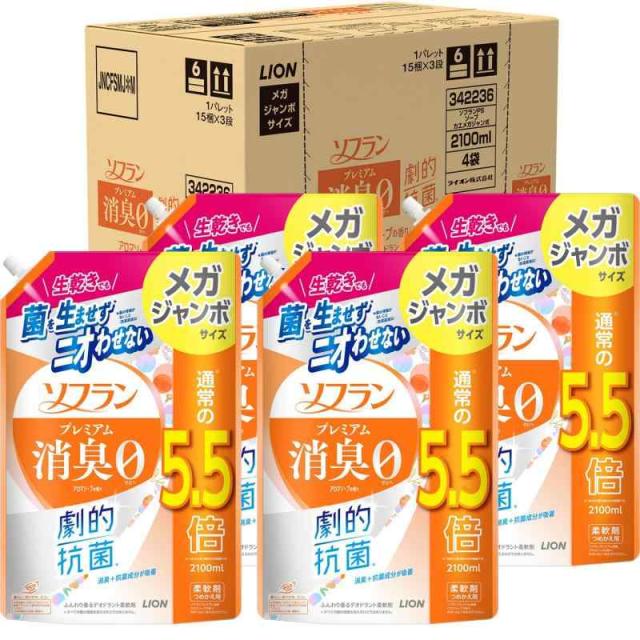 ソフラン プレミアム消臭 詰替メガジャンボ2100ml×4個 アロマソープ 生乾きでも菌を生ませずニオわせない 柔軟剤 抗菌 部屋干し 汗臭 体臭 加齢臭 靴下臭