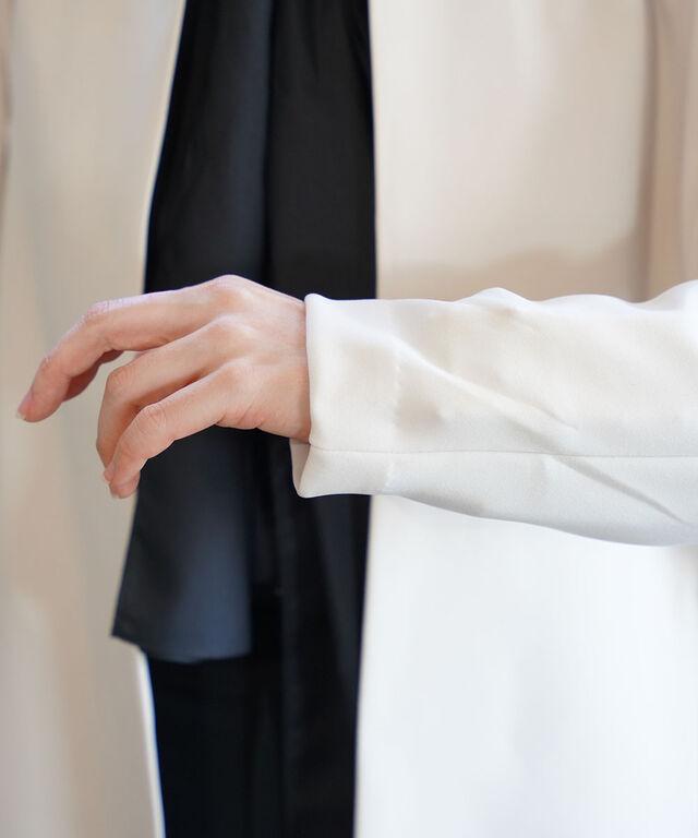 フロントオープンタイプなので、さっと羽織るだけで様になります。