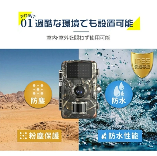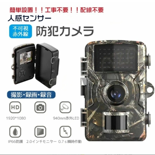 【防犯・ご近所トラブル・不法投棄対策・ペットの見守り・野生動物の監視・オフィスの動線調査などの用途にピッタリ】: 1080P フルHDの高精細度解動画に対応し、写真解像度は最大2800 万に達します。赤外線LEDライトで、周囲に全く光がない真っ暗な環境でも撮影可能。不審者には見えない「不可視赤外線ライト」を照射することによりカメラの存在に気づかれないよう監視できます。