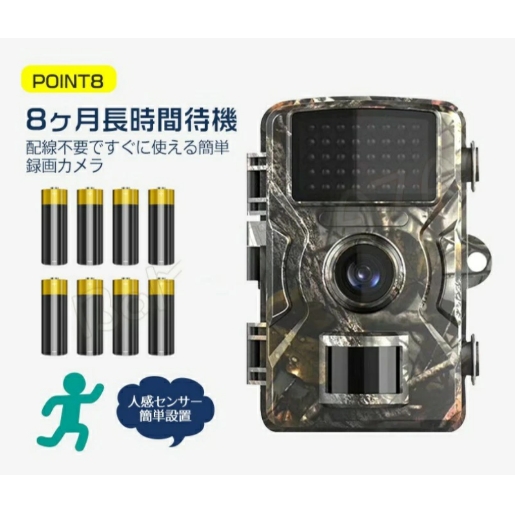 【配線不要ですぐに使える簡単録画カメラ】:一般的な監視カメラと比べて、本製品は乾電池式で、電源などの配線工事不要、設置工事費不要て安価に設置ができます。(乾電池は付属しておりません)