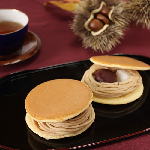 マロンクリームとふんわりどら焼き。まさに和と洋の美味しさが重なる創作菓子です。