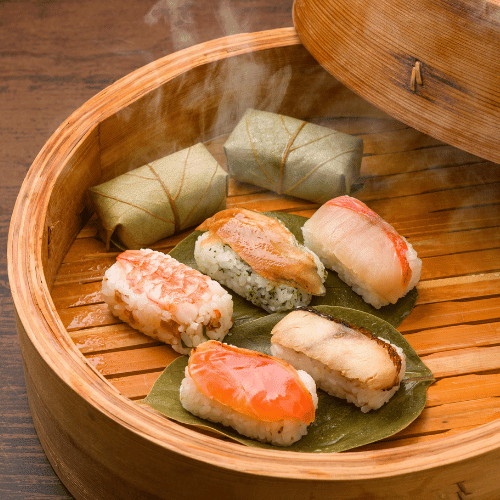 奈良名産・柿の葉寿司を冷凍でお届け。レンジでチンの簡単調理。