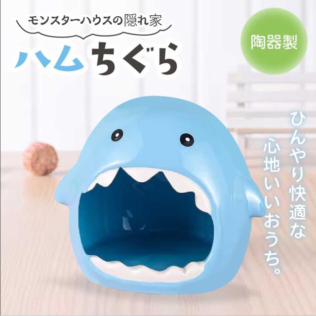【在庫限り】ペット 用品 ひんやりハムちぐら 陶器 ブルーモンスター ハムスター ハウス 小動物 寝床 ドーム型ハウス 水洗い可 シェルター ベッド かわいい ペット用品 雑貨 オブジェ 巣 家 ハウス 飼育 寝具 夏用 ひんやり つるつる 暑さ対策 涼しい