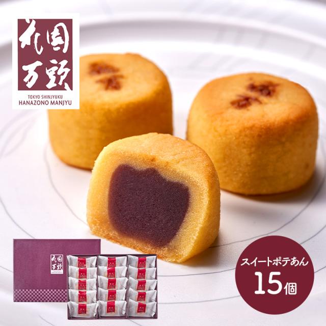 お歳暮 2025 スイートポテト 東京 新宿 花園万頭 スイートポテあん 15個 まんじゅう 饅頭 スイーツ 和菓子 焼き菓子 お菓子 お祝い 内祝い お返し 出産内祝い 結婚内祝い おしゃれ ギフト 常温 日持ち 個包装 送料無料 SK2405 御歳暮