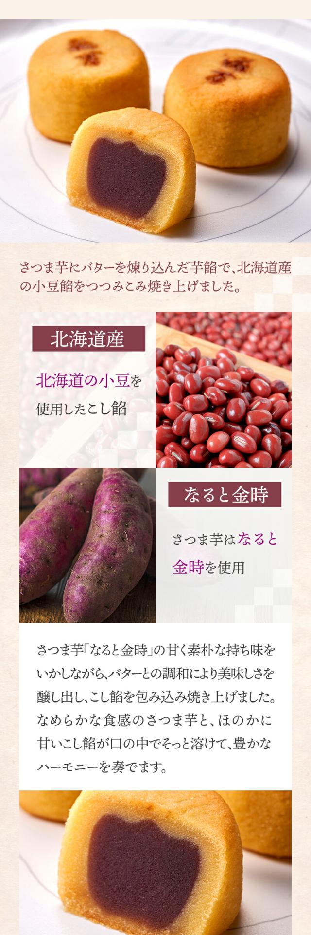 さつま芋にバターを煉り込んだ芋餡で、北海道産の小豆餡をつつみこみ焼き上げました。
