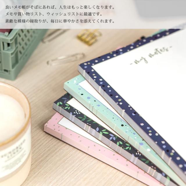 いいメモ帳がそばにあれば、人生はもっと楽しくなります。メモや買い物リスト、ウィッシュリストに最適です。素敵な模様の縁取りが、毎日に華やかさを添えてくれます。