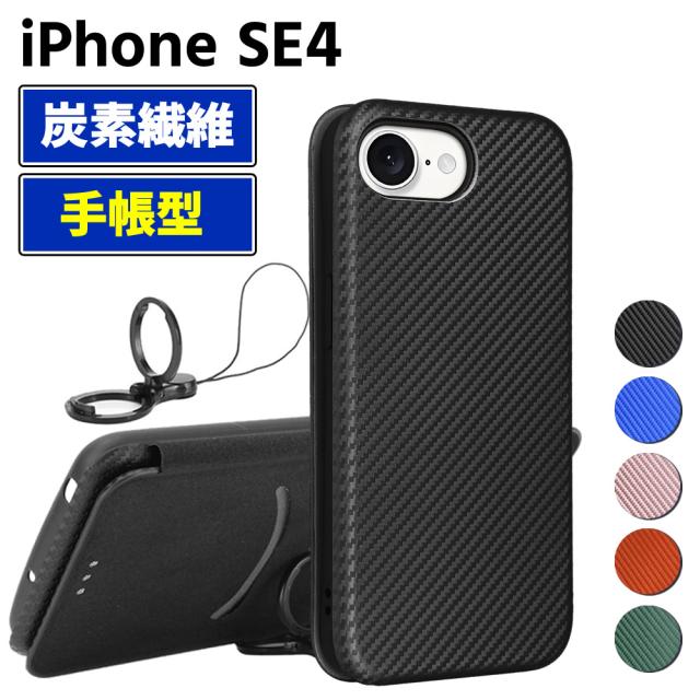 iPhone SE4 手帳型 薄型 カーボンファイバー スマートフォン用ケース 炭素繊維 カバー TPU 保護バンパー 財布型 マグネット式 カード収納 落下防止 カードホルダー