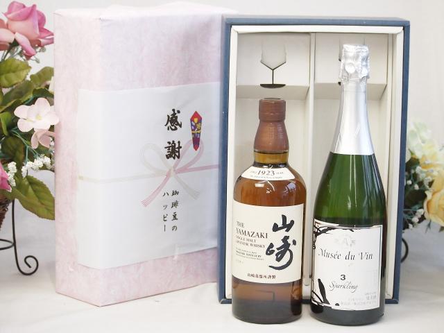 感謝の贈り物ボックス 国産ウィスキー 山崎 と国産ワインセット(MdV オアシス3 白スパークリングワイン辛口(長野県)750ml山崎 ノンビンテージ シングルモルト700ml