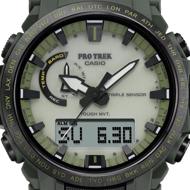 自然を愛する人の本格アウトドアギアPRO TREKから、全面蓄光ソーラー文字板を採用した「PRW-61LD」です。
