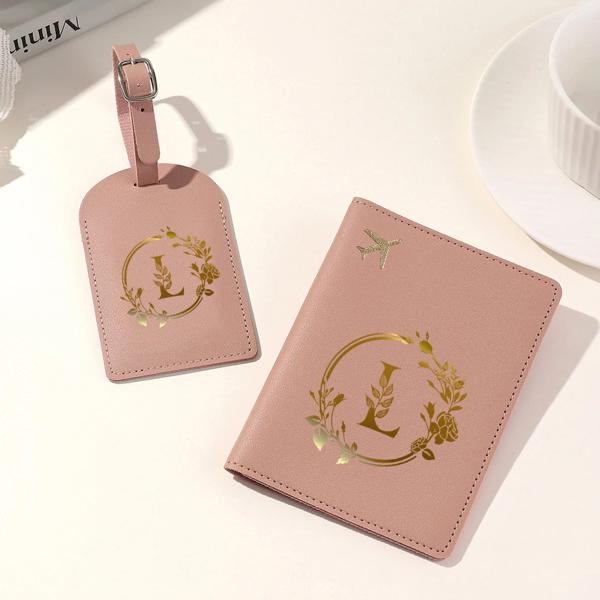 防水レザーパスポートケース,クレジットカードウォレット,リーフプリント,ゴールドレター,トラベル,男性と女性