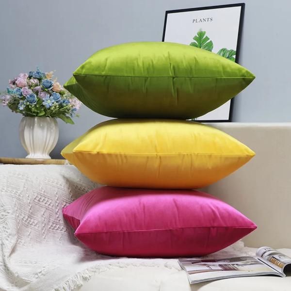 無地の赤,黄色,青の枕カバー,ソファ装飾,緑のベルベット枕,リビングルーム,車,家の装飾,45x45