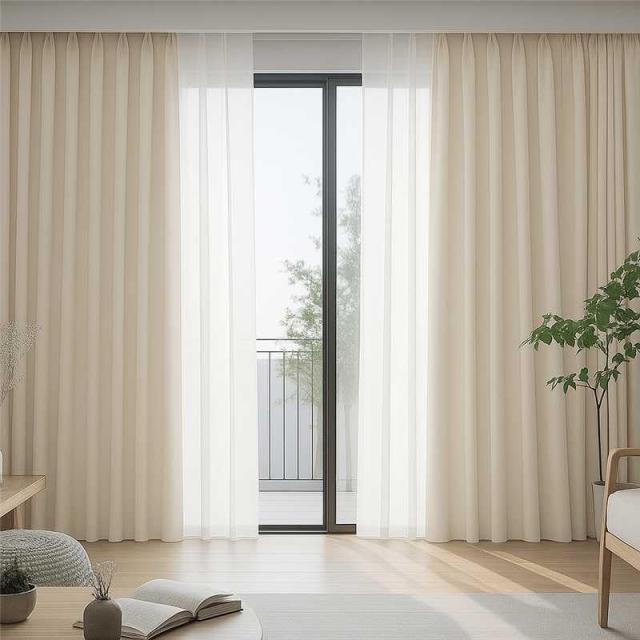 こちらのカーテンは、優れた遮光効果を提供します。朝や曇りの日などの弱光環境では、三層の遮光生地がほぼ完全に光を遮断し、静かで暗い雰囲気を作り出します。一方、正午や強い日差しの下でも、95%の遮光率を持つ核心のブラックシルク層によって、カーテンは大部分の光を効果的に遮断し、部屋のプライバシーと快適さを保ちます。遮光効果は光の強さによってわずかに変化することがありますが、常に理想的な光のコントロールとプライベート空間を確保します