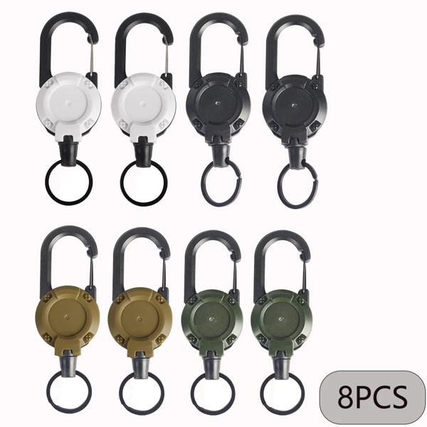 拡張可能な格納式ホルダーキーホルダー、バッジリール、カラビナ付きヘビーデューティークリップ、男性用キーホルダー、アウトドアバッグ、1個、2個、4個、8個