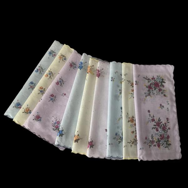 女性用プリントコットンの小さなハンカチ,薄い9本のストライプのパック,29.5cm, 11.6インチ