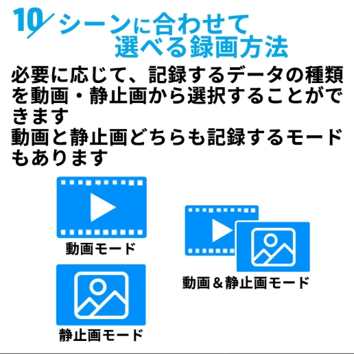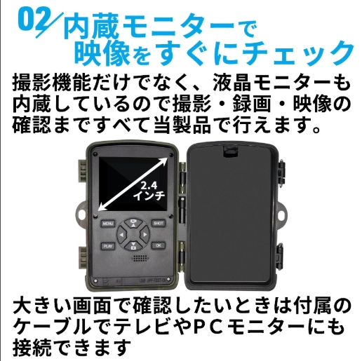 撮影機能だけでなく、液晶モニターも内蔵しているので撮影・録画・映像の確認まですべて当製品で行えます。