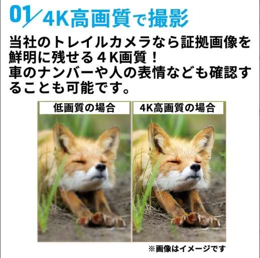 当社のトレイルカメラなら証拠画像を鮮明に残せる4K画質!