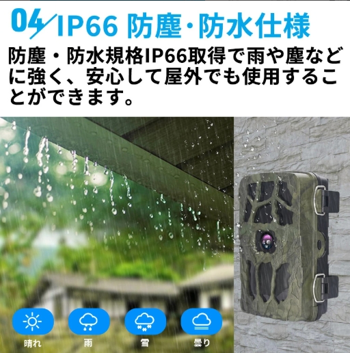 防塵・防水規格IP66取得で雨や塵などに強く、安心して屋外でも使用することができます。