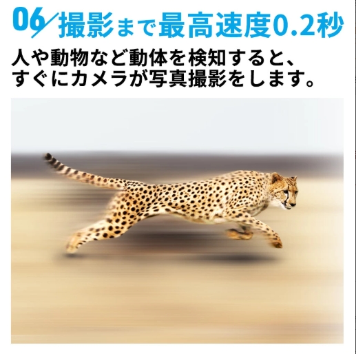 人や動物など動体を検知すると、すぐにカメラが写真撮影をします。