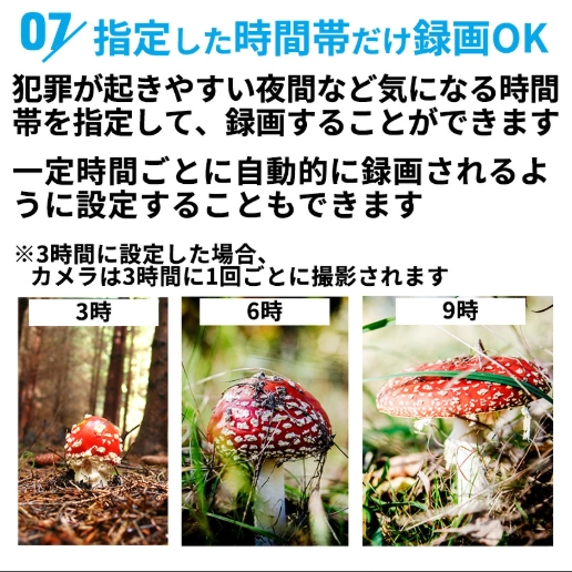 犯罪が起きやすい夜間など気になる時間帯を指定して、録画することができます。