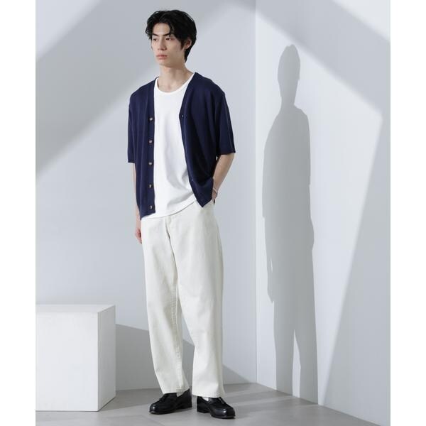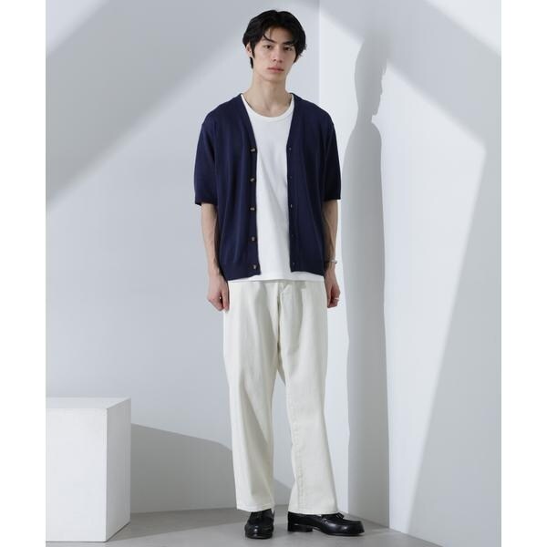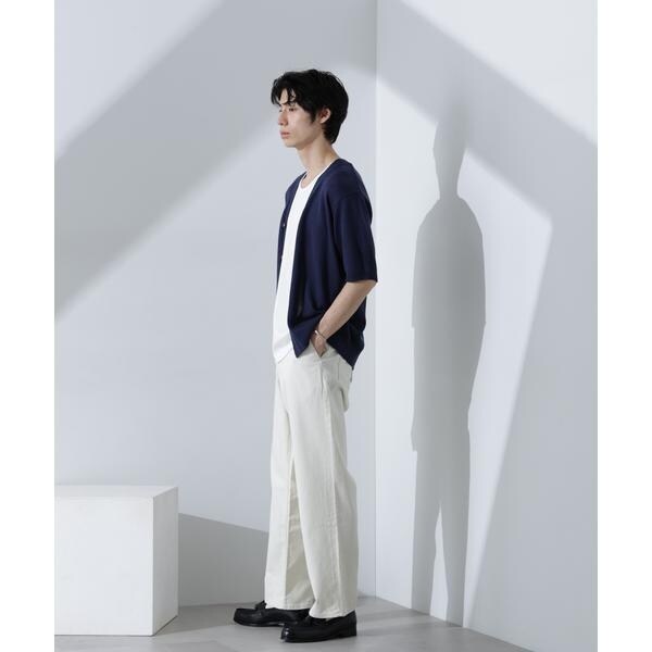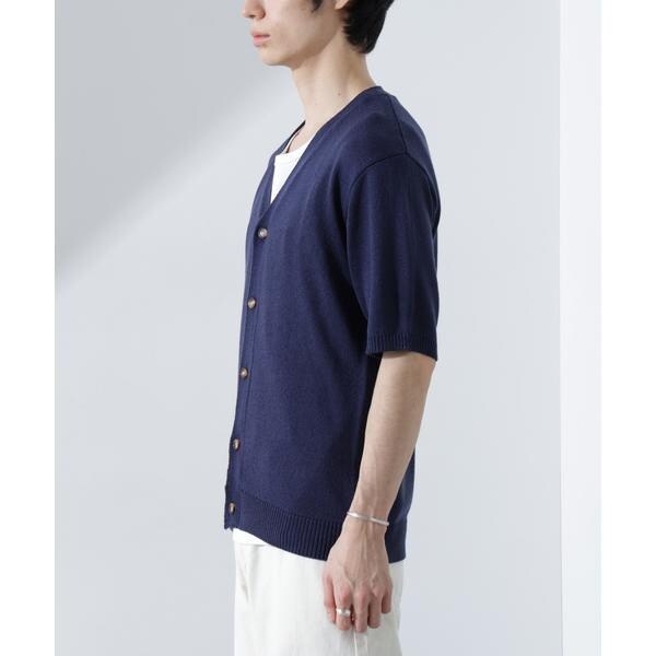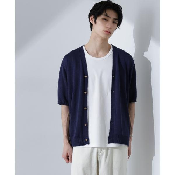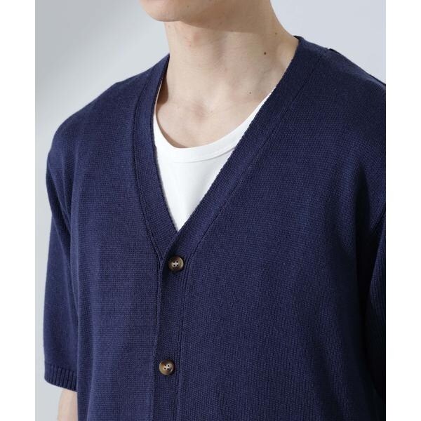 柔らかなコットンライクの糸を使用した半袖カーディガン。抜け感のあるサイズが、爽やかな初夏のムードを高めるおすすめの1着です。