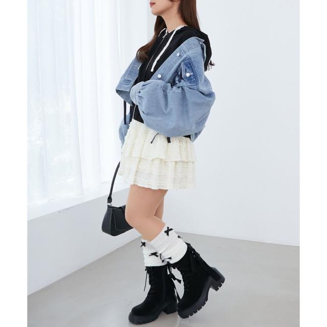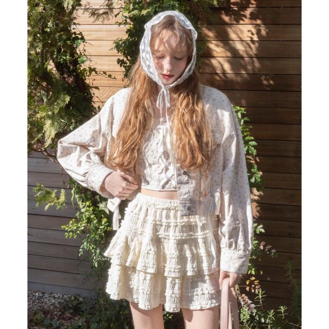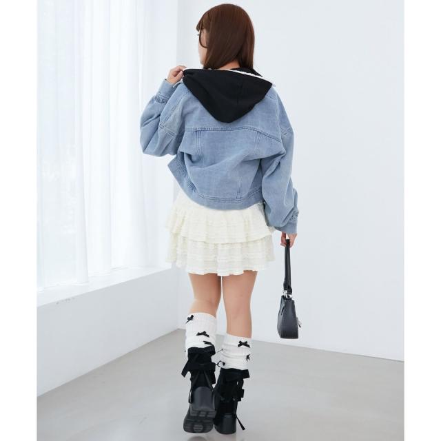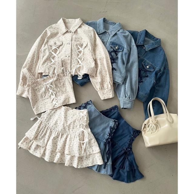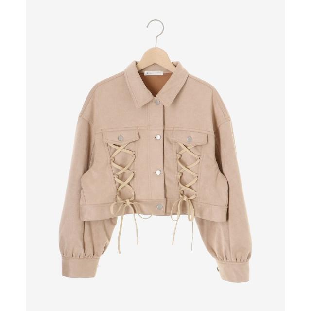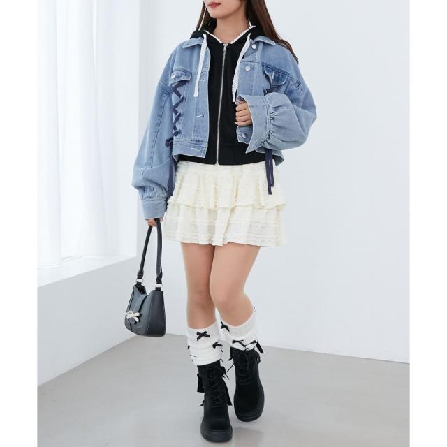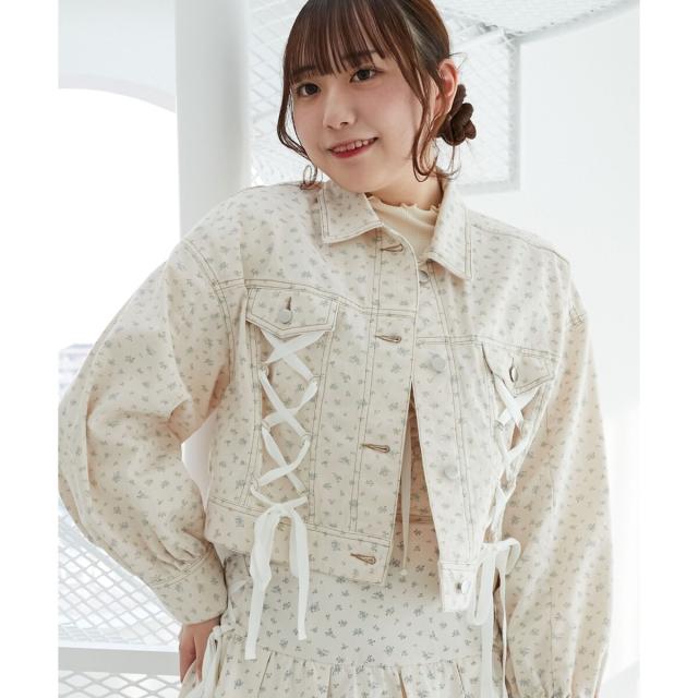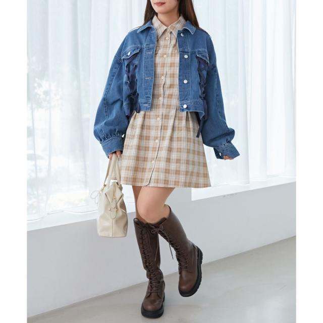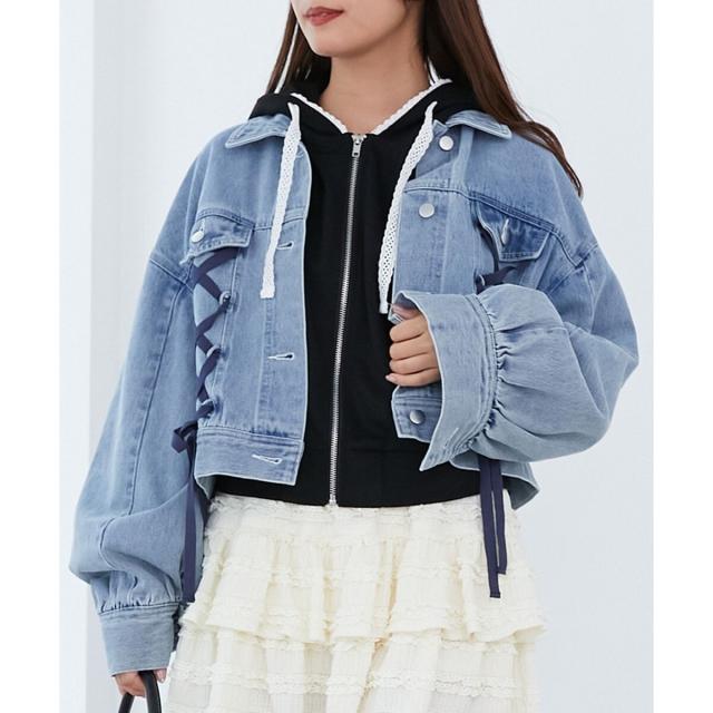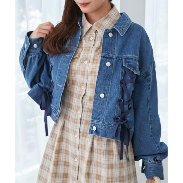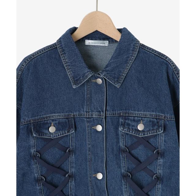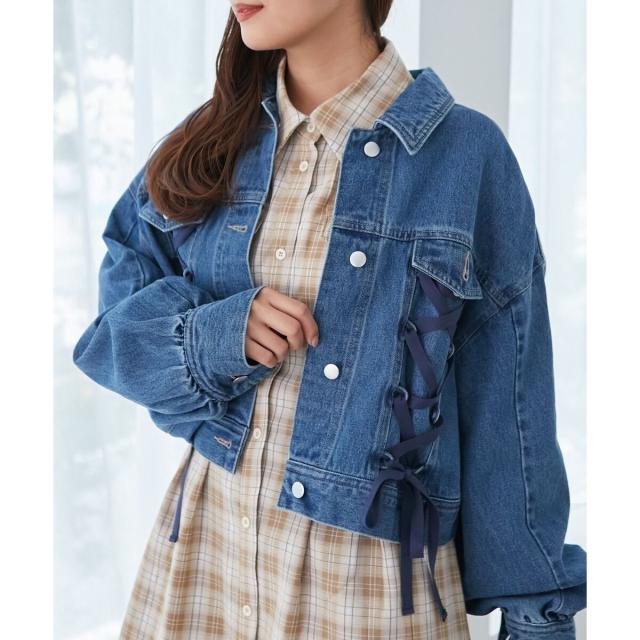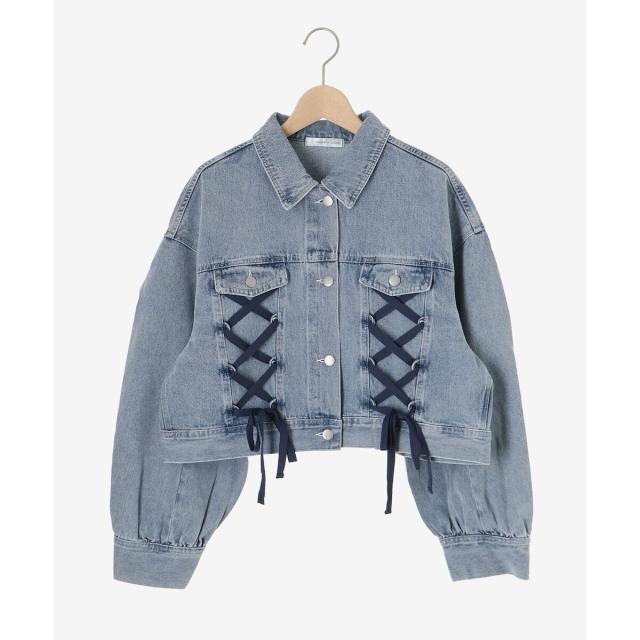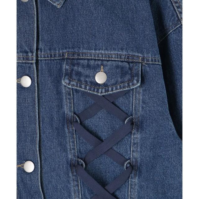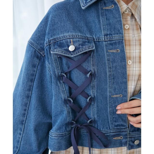 レースアップデザインがガーリームードを盛り上げるデニムジャケット