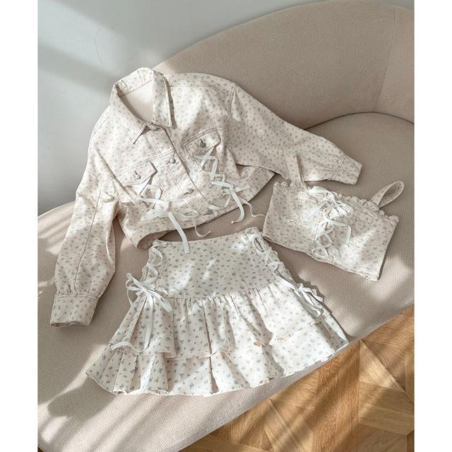 1052030105 フロントレースアップビスチェ、1052040106 サイドレースアップフリルスカパンとのセットアップでの着こなしもおすすめです。