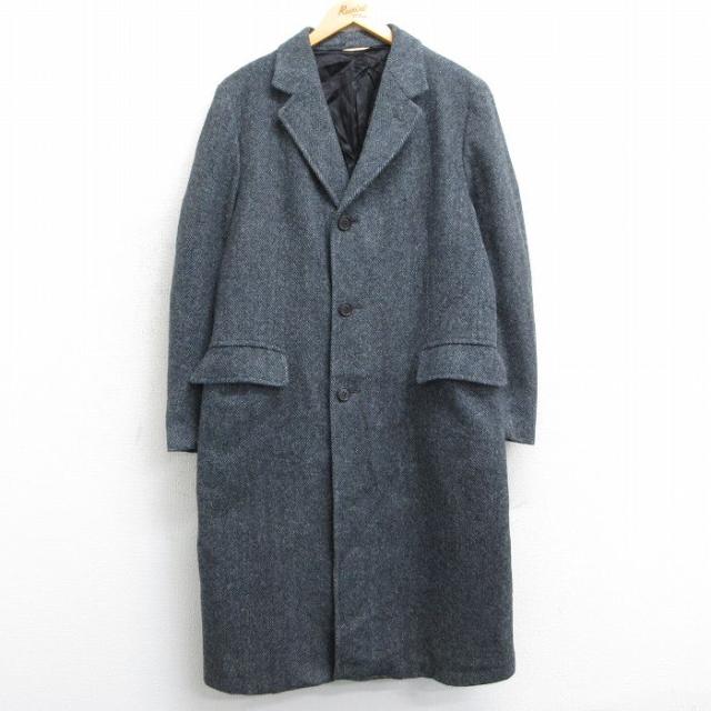 古着 長袖 ウール コート メンズ 90年代 90s ロング丈 USA製 濃グレー Mサイズ 中古 アウター 中古 古着