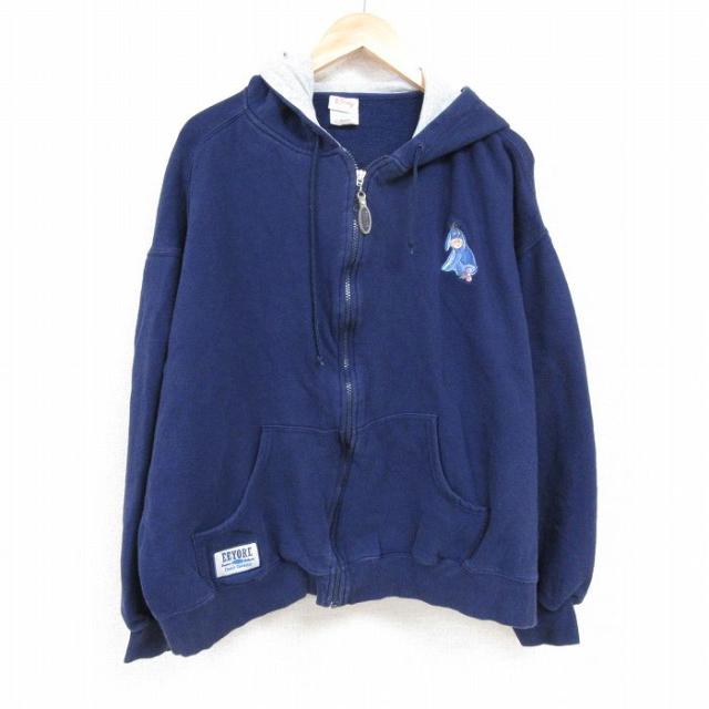 【商品名】 XL★古着 長袖 スウェット メンズ 00年代 00s ディズニー DISNEY くまのプーさん 刺繍 クルーネック 青緑