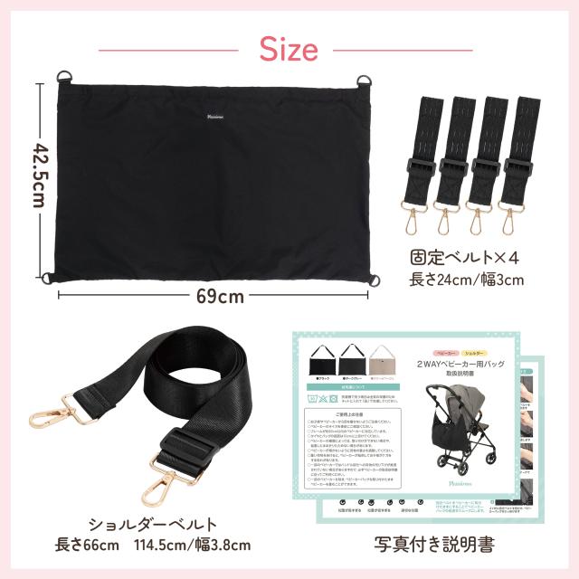 ○セット内容:ベビーカーバッグ、固定ベルト4個、ショルダーベルト、写真付き説明書