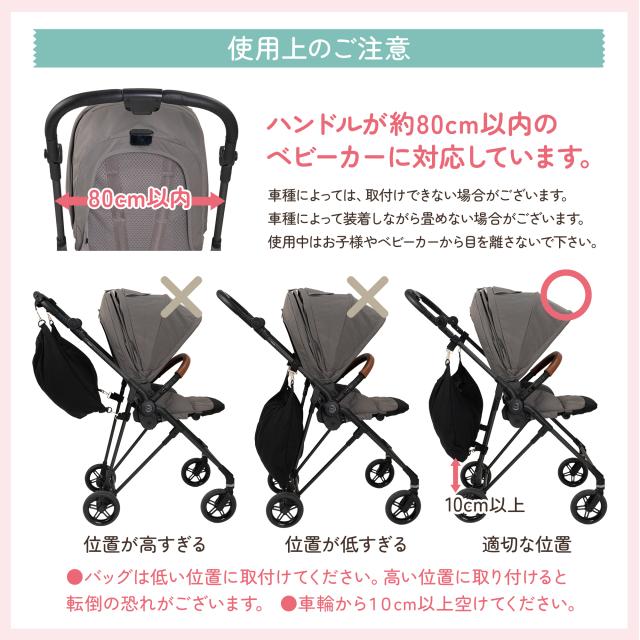 ○対応:ハンドルが約80cm以内のベビーカーに対応しています
