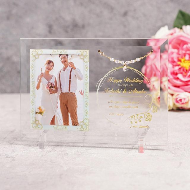 結婚祝い チャーム付き フォトフレーム 名入れ DFJ-1 L判 名前入り 写真立て 両親 記念品