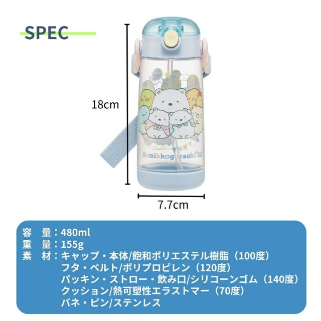 商品名:スケーターワンプッシュストローボトル水筒480mlPDSH5キッズ子供ストローワンタッチプラスチック園児キャラクター男の子女の子