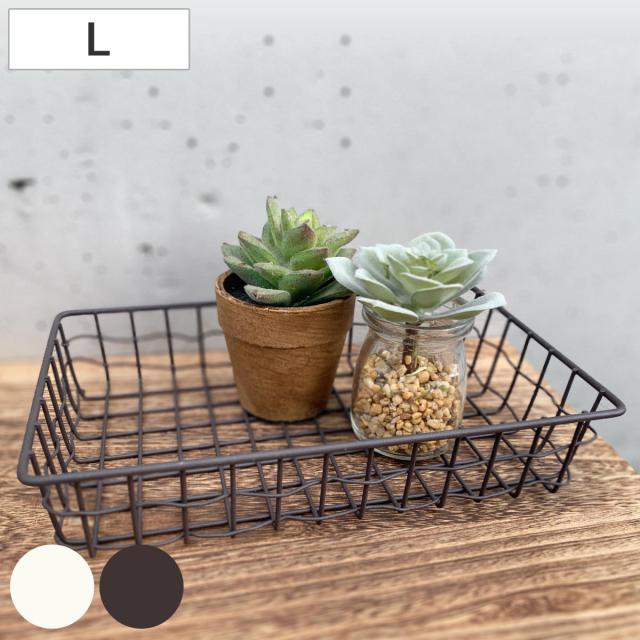 かご スウェル トレー L 小物入れ 幅25×奥行15×高さ5cm ( 収納 卓上収納 バスケット ワイヤーバスケット 浅型 ワイド アイアンバスケット ワイヤートレー カゴ 角型 ワイヤー アイアン 収納バスケット 小物収納 おしゃれ )