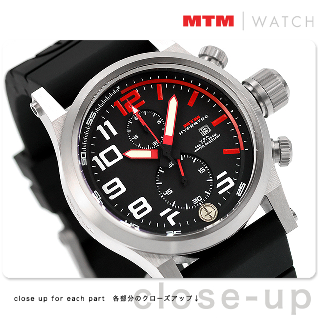 正規品 エム ティー エム ハイパーテック クロノ 2A クロノグラフ メンズ 腕時計 HC2-SS4-RED1-BR2S-A MTM HYPERTEC CHRONO 2A アナログ ブラック 黒 ◆MTMは、創業者である元軍特殊部隊のJoe Casisによってアメリカ・カリフォルニアで生まれました。頑丈さと非常に高い耐久性を兼ね備え、ビジネス・アウトドア、またそれらよりもシビアなミリタリーの環境でも厳しいテストを行っており、軍人、ファーストレスポンダー、法執行機関従事者、ハンター、ハイカー等に特に支持されています。 HYPERTEC CHRONOはMTMの時計のすべてのクオリティを兼ね備えながらカジュアル・ビジネスにも対応します。316Lステンレスケース、クロノクォーツ、耐傷加工の強化ガラスで、美しいクロノグラフメンズウォッチを実現します。さまざまなシーンで映えるデザインを実現しています。