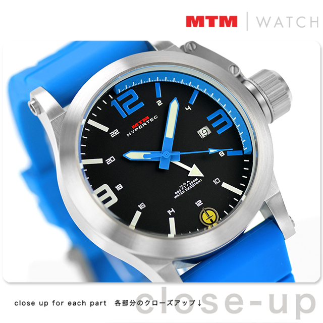 エム ティー エム ハイパーテック 44 クォーツ 電池式 腕時計 ブランド メンズ MTM HYP-SS4-BLUE-BL2S-A アナログ ブラック 黒 おしゃれ 防水 プレゼント 男性 実用的