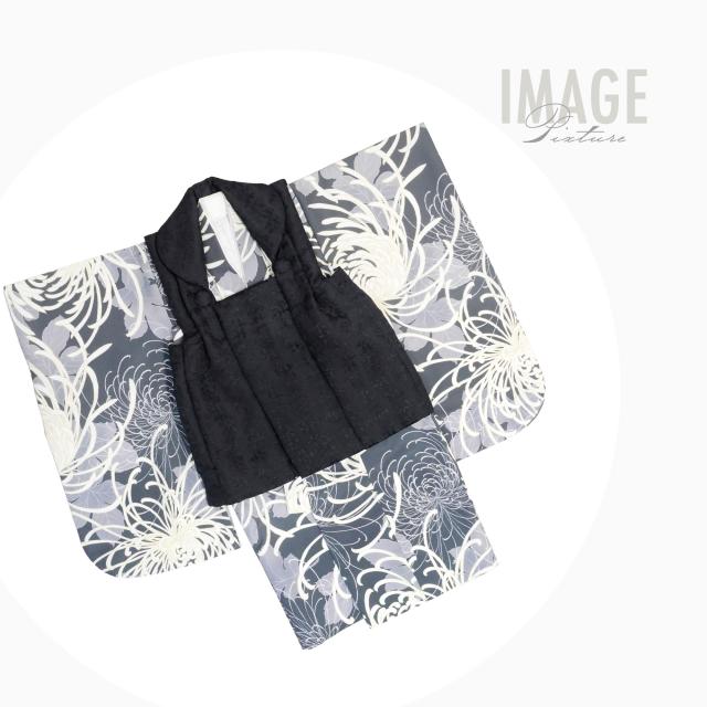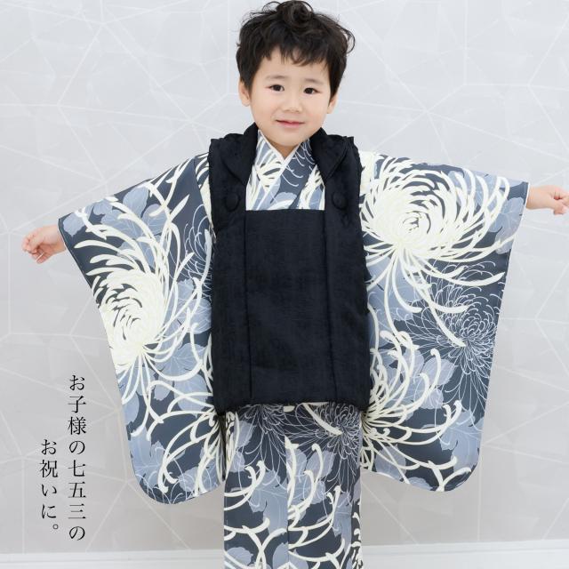3歳 男児 被布コート 安心のフルセット レンタル 七五三 三歳 男児 着物 貸衣装 男の子 着物セット お正月 ブラック グレー No.265