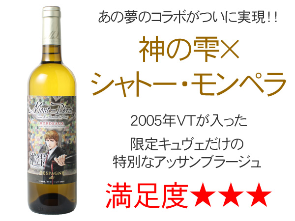 そんな、2001年VTをブレンドした赤ワイン「シャトー・モンペラ キュヴェ 神の雫 ルージュ NV 赤 」も同時入荷しております!