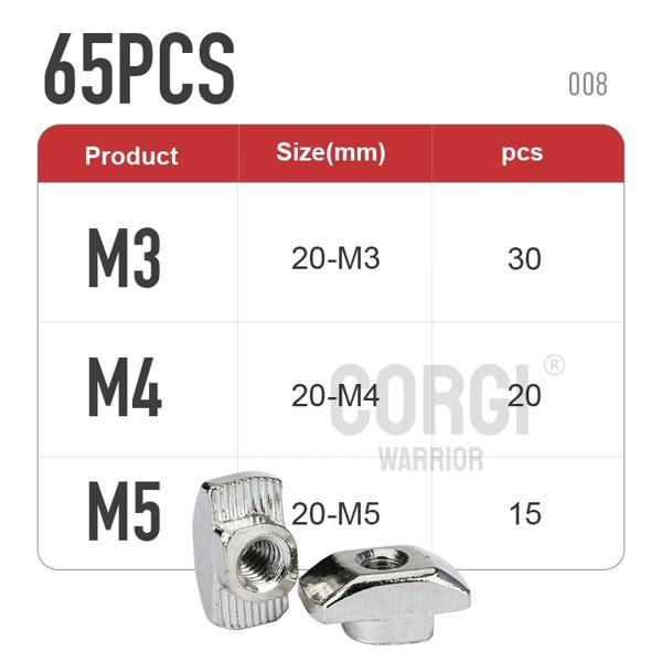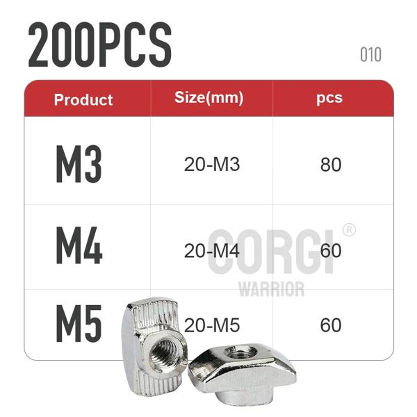 ナットスロットの品揃えキット,ニッケルメッキアルミニウムプロファイル,ボックスm3,m4,m5,m6,m8,20,30,40シリーズ,65-200p