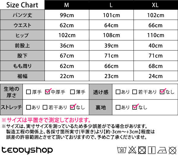 製造工程の関係上、各採寸箇所実寸(平置き)より【約-3cm〜+3cm】程度は
