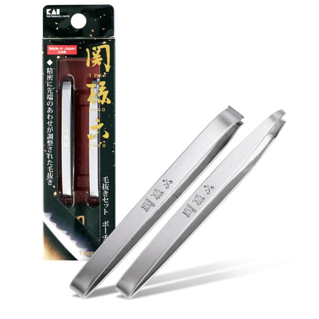 貝印 KAI 関孫六 毛抜き セット用 収納ポーチ付 先平 先細 ピンセット用 2個 HC3533
