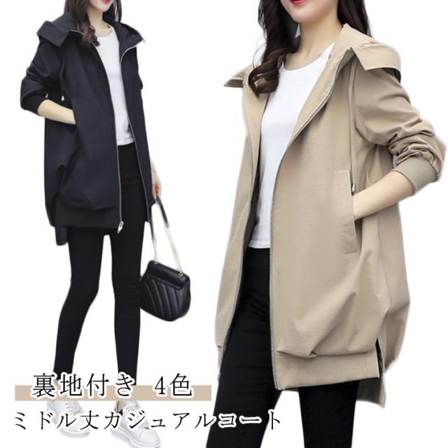 秋 アウター コート フード付き カジュアルコート 30代 40代 体型カバー トレンチコート ゆったり スプリングコート ミドル丈 秋コート 通勤 春コート おしゃれ カジュアル 大きサイズ きれいめ 送料無料