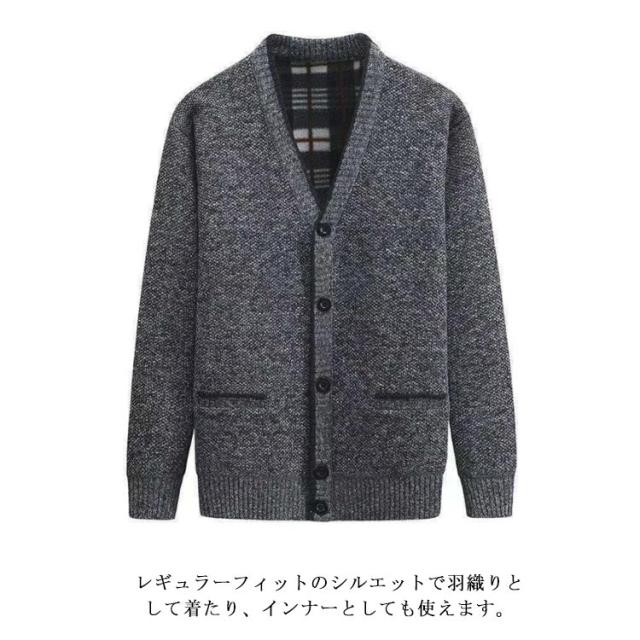 ニットカーディガン Vネック メンズ シニア 厚手 ニット カーディガン 高齢者 春秋冬 厚手 アウター ポケット付き カーデ 羽織り 暖かい 50代 60代 70代 80代 90代 父 祖父 おじいちゃん お年寄り 寒さ対策 送料無料