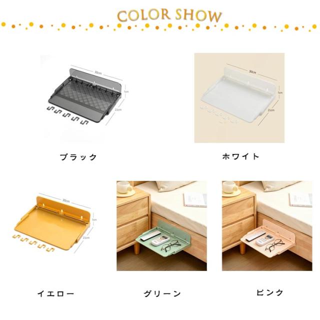 ウォールシェルフ ウォールラック サイドテーブル 伸縮トレイ 折り畳み ベッドテーブル ベッド用 ナイトテーブル 壁掛け棚 スマホ置き 壁面収納 トレー 棚板 省スペース 収納 スリム 玄関 多機能 寝室 自宅用 寮用 ブラック ホワイト イエロー グリーン ピンク