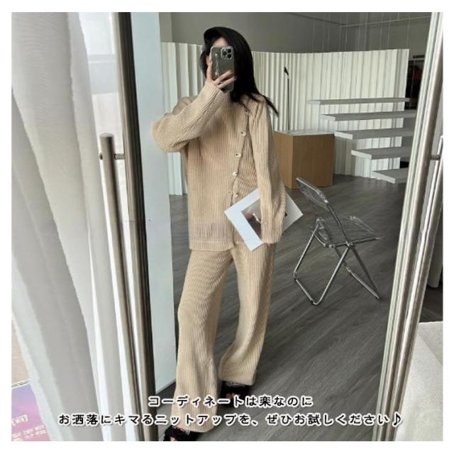 | スタイリッシュで快適な履き心地のニットセットアップ。 ワイドシルエットのニットパンツとアシンメトリーニットとなっております。 トップスはサイドスリットやドロップショルダーデザインでタックインをし易くしております。 パンツはリラックス感がありながらも、ストレートの美しいシルエットがこなれた印象をプラスします。 伸縮性と耐久性に優れた素材を使用したことで、ふんわりと優しく包み込まれるような着心地です。 コーディネートは楽なのにお洒落にキマるニットアップを、ぜひお試しください♪ | |