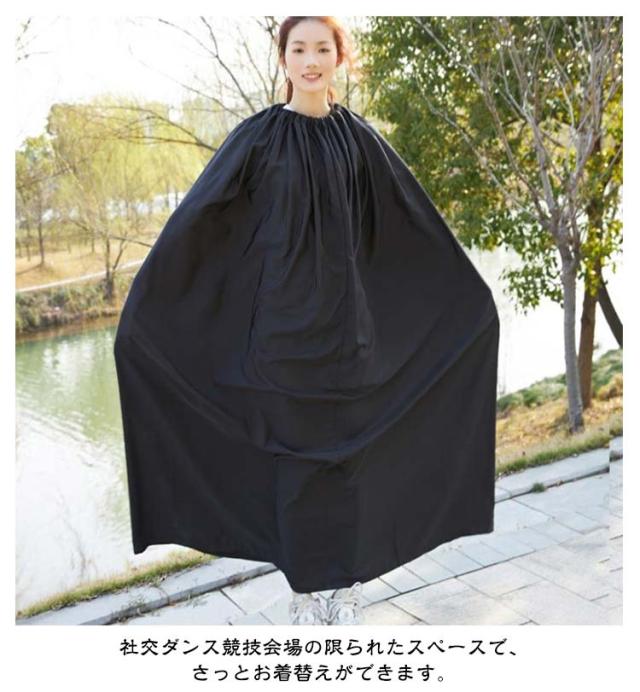 | 【全3色】【3サイズ】 収納袋が付いたお酒落なお着替え用ケープです! 災害時の簡易更衣室代わりに防災グッツとしても役立ちます。 首元がゴム仕様になっているのと生地面積も広いのですぐに着替えやすい。 男女兼用タイプで、お子様から大人まで使用可能です。 社交ダンス競技会場の限られたスペースで、さっとお着替えができます。 | |
