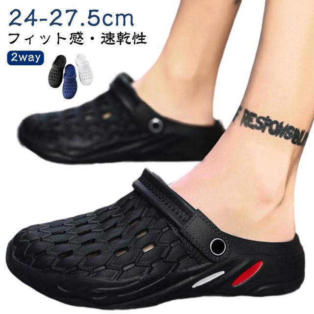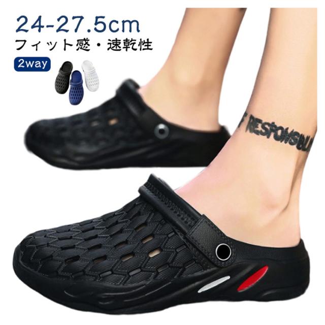 メンズ サンダル レディース スリッパ 24-27.5cm サボサンダル 2way 靴 スリッポン シューズ カジュアル ファッションサンダル 水陸両用 軽量 通気性 快適 室内/室外履き おしゃれ アウトドア 海 ビーチ プール レジャー キャンプ BBQ 洗車 黒 さんだる