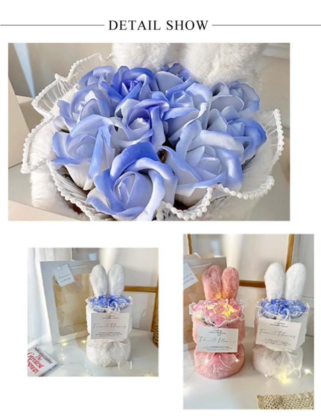ソープフラワー 光る LEDライト付き ウサギの耳 花束 造花 11個の小さなフラワー かわいい ぬいぐるみ バラの花束 ローズブーケ 枯れない 石鹸花 フラワーソープ 母の日ギフト ブーケ うさぎ耳 誕生日 プレゼント お祝い ギフト