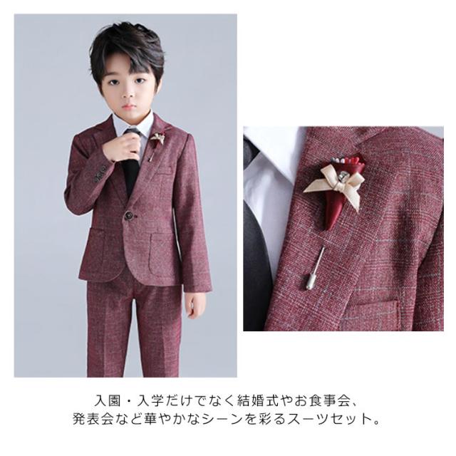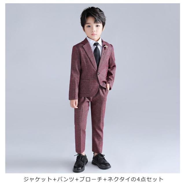 キッズ スーツ セットアップ 4点セット 男の子 フォーマル 結婚式 入学式 卒業式 子供 ジュニア フォーマルスーツ 大きいサイズ ジャケット パンツ プローチ ネクタイ スーツセット 演奏会 発表会 七五三 おしゃれ ネイビー 紺 ワインレッド グリーン 【送料無料】